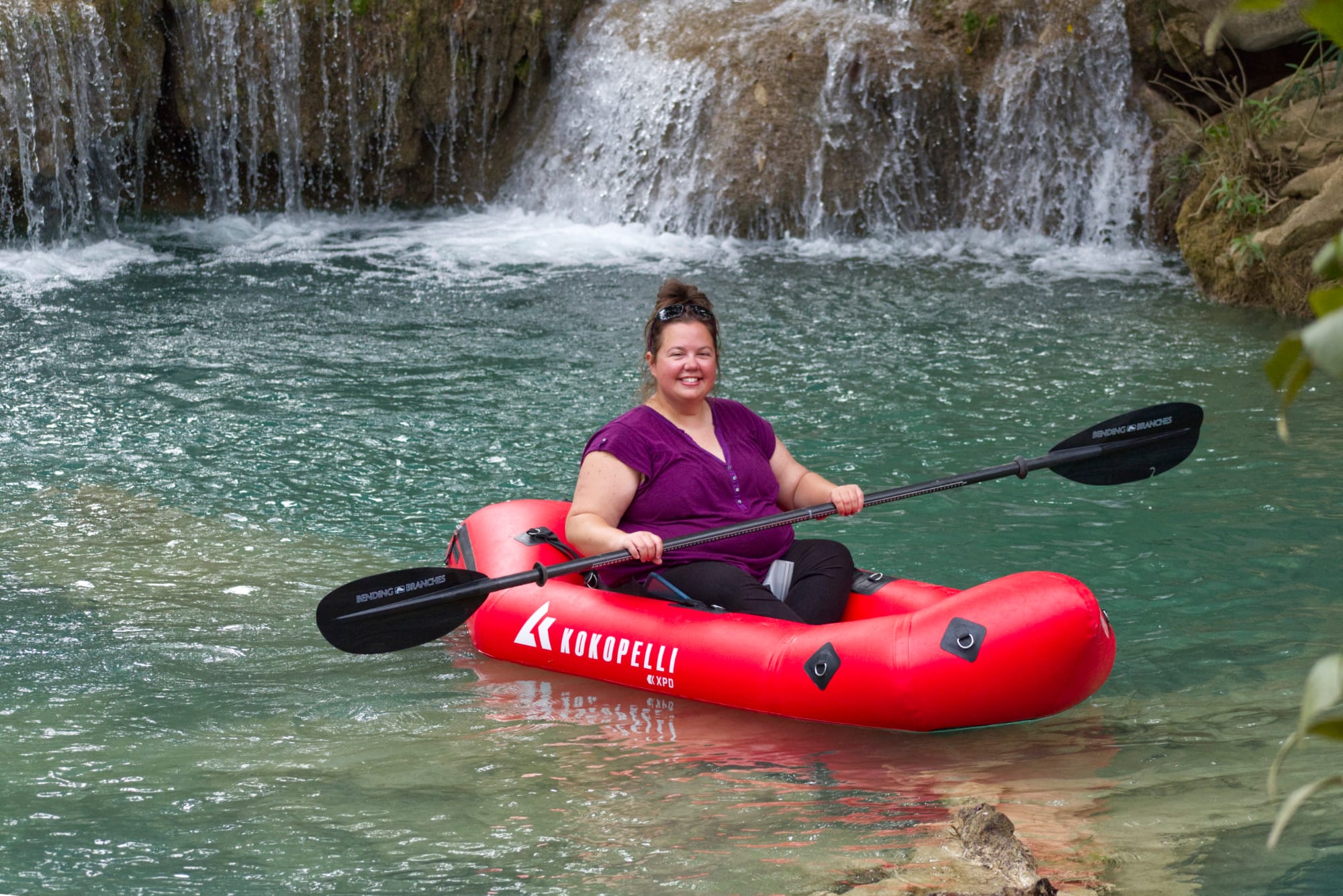 The plan for today is to get out on the water! After breakfast I get out and inflate one of our packrafts so that Heather can do some paddling around on the turquoise water we are camped on. I put the raft in the water and take a quick test run just a bit downstream to make sure that the flow isn’t too strong to paddle against coming back upstream. It isn’t in the least.