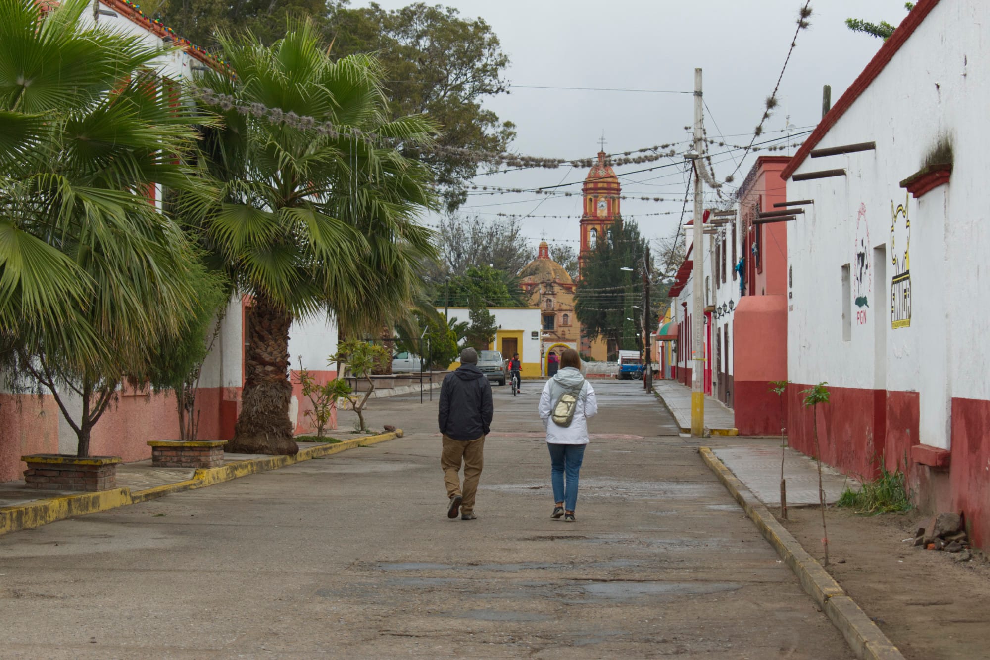 Shortly after setting up the camper we slip on our rain gear and head into town to check things out. It’s quiet around town, there aren’t many people out at all. I get the vibe that it’s usually pretty quiet around here. The mission is beautiful and the doggos were all over the streets ready to greet us. That’s a constant here in Mexico. It’s different in Baja than here in mainland. In Baja the dogs typically look much healthier and seem like they’re living their best little lives, here they look a little down on their luck. They’re usually skinny and injured in some way. It really breaks my heart to see them in such bad shape. I wish we could take them all with us.