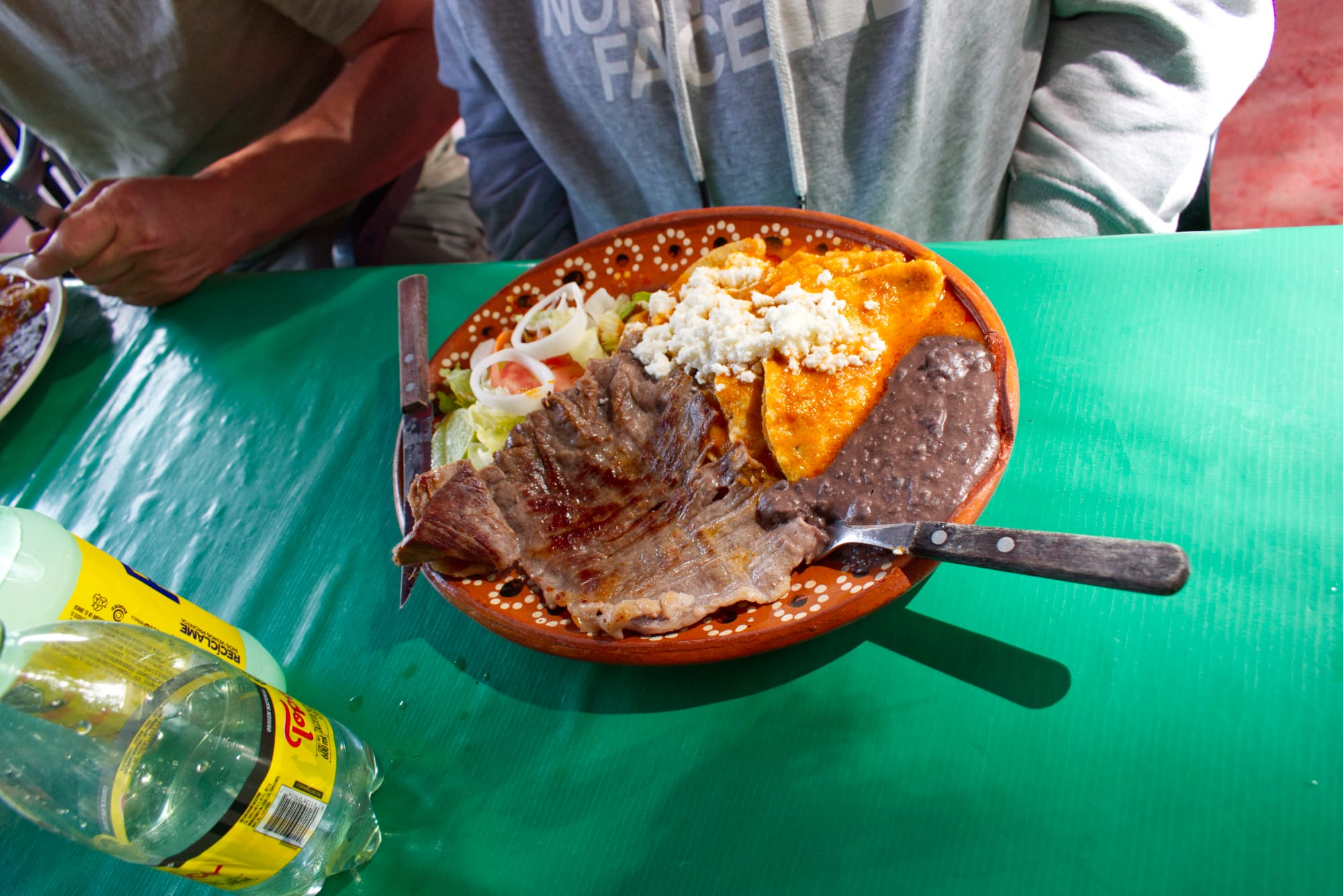 After finding a side street with enough parking for our three rigs we all walked into Agua Buena and had a yummy lunch at La Villa Restaurant. I enjoyed my food but I already miss flour tortillas. They are becoming less and less common the further south we get, replaced instead by corn. We had some cute visitors sit with us during lunch. I want to give them all my food but I know that’s frowned upon.