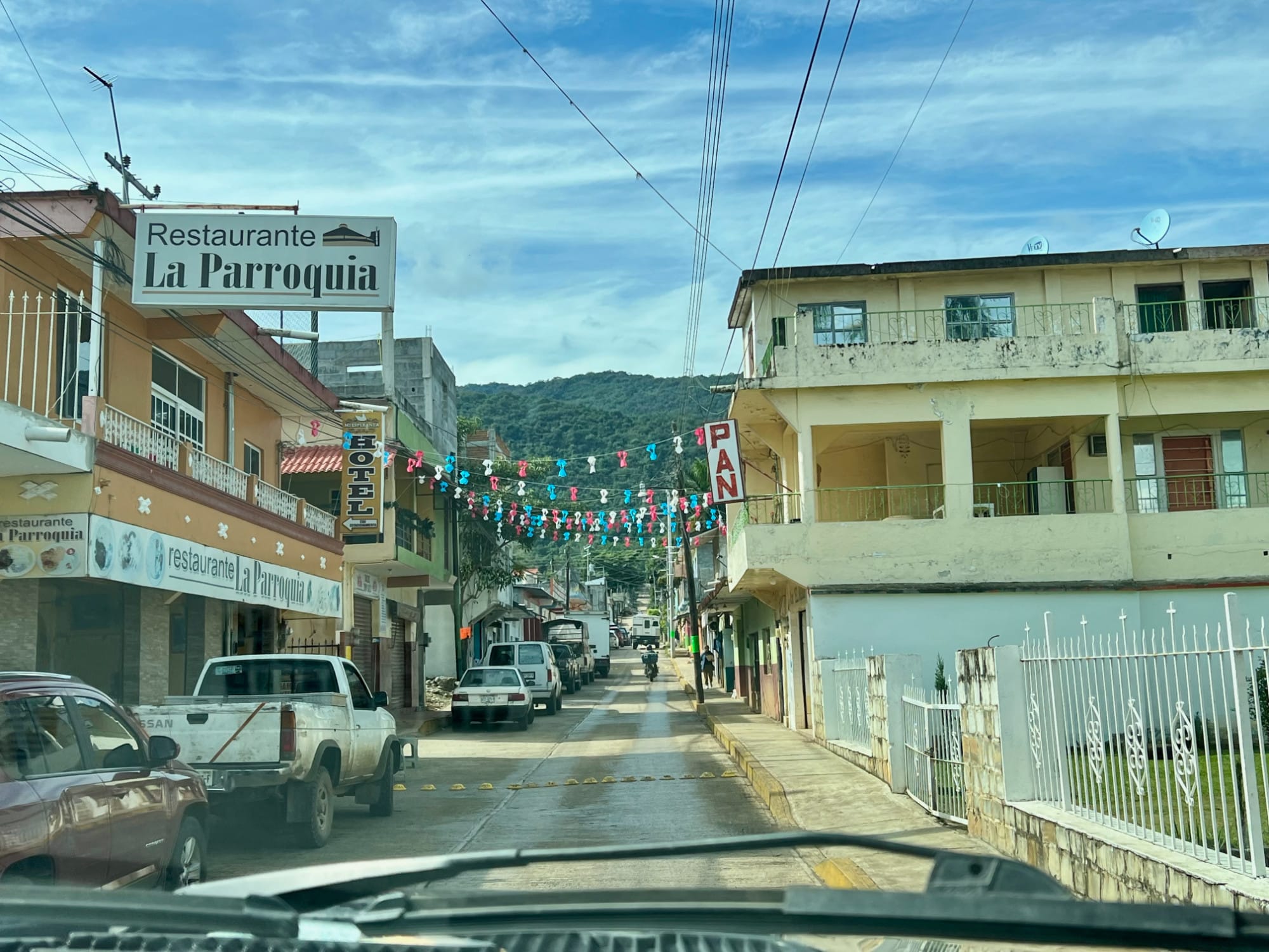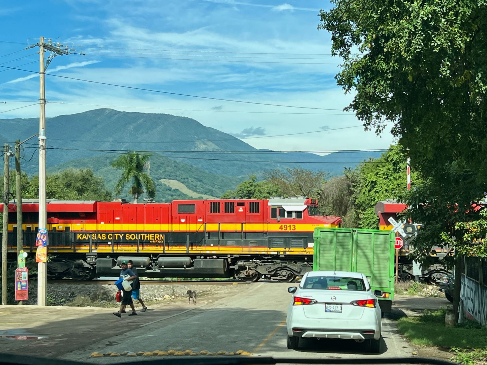 We stopped in the cute town of Tamasopo for water, it was here that we saw our very first freight train in Mexico. I always enjoy going through towns in Mexico. I love all the vibrant colors and the culture. The people often seem so happy. However, I know driving through these towns can be stressful for Adam as the streets are often narrow and steep, plus there’s usually people and dogs walking all over.