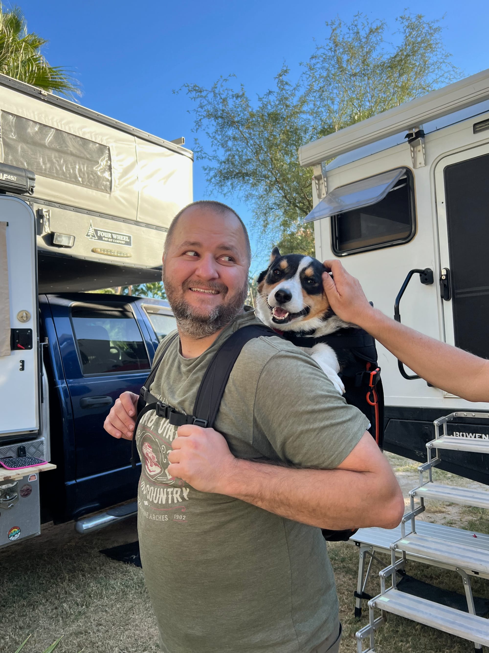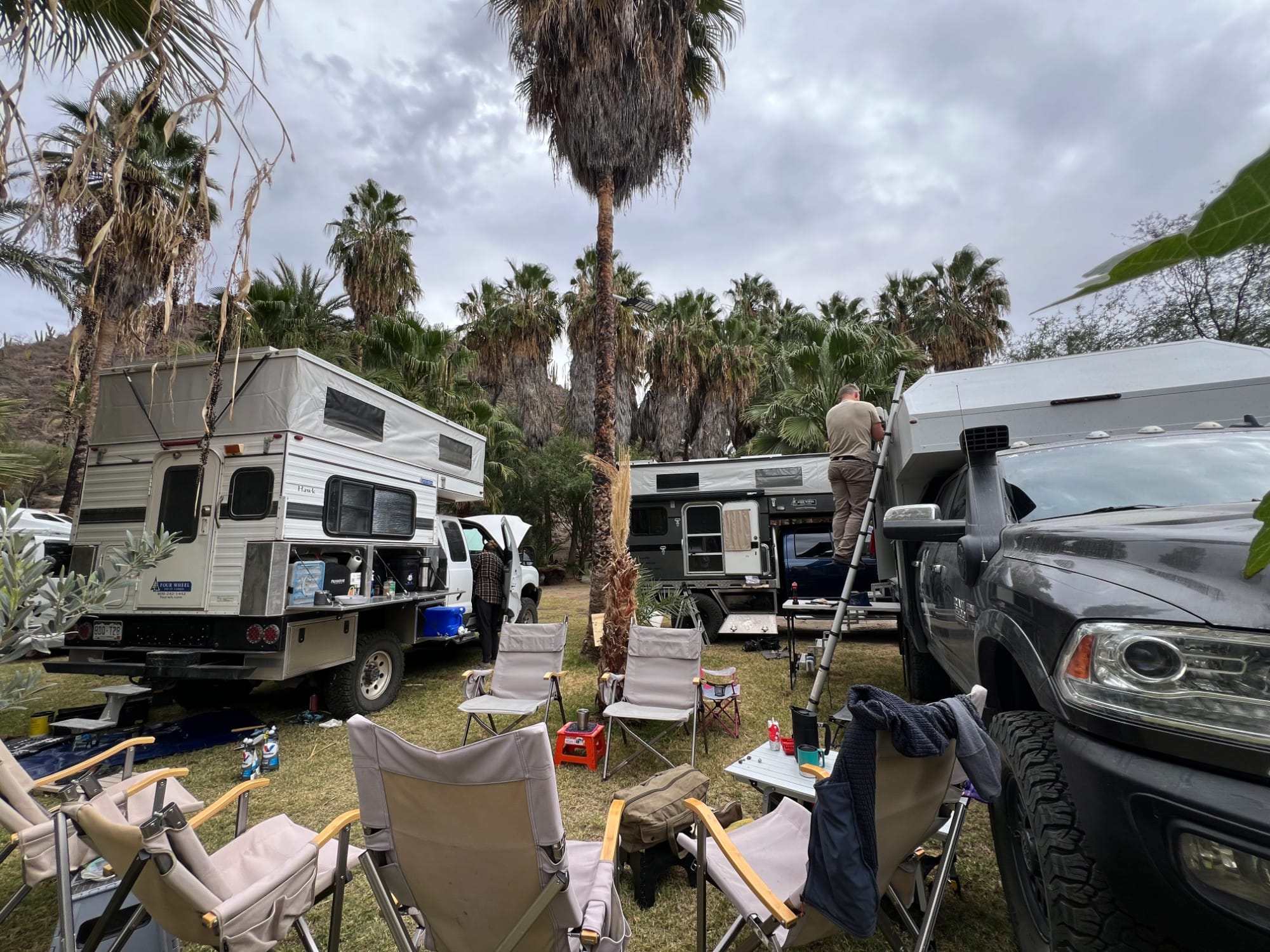 After our morning routine of coffee and breakfast we each started on our projects, Josh repairing the rivets holding his awning on, Mark re-sealing a leaking differential cover, and myself installing a new backup camera on Wanda. Unsurprisingly a couple of our projects took much longer than anticipated with Mark and I working well into the afternoon. Fortunately we are not on a timeline of any sort.