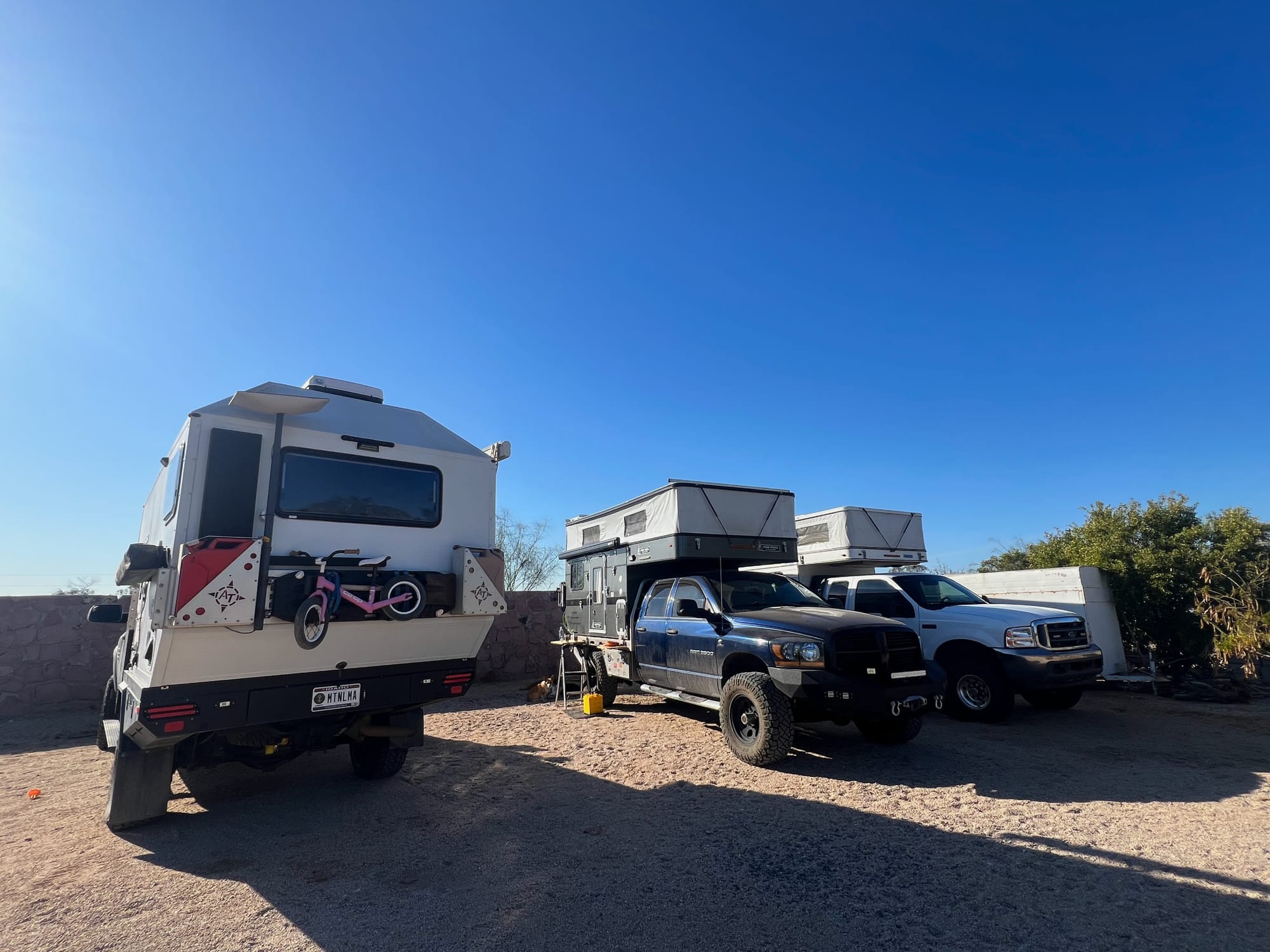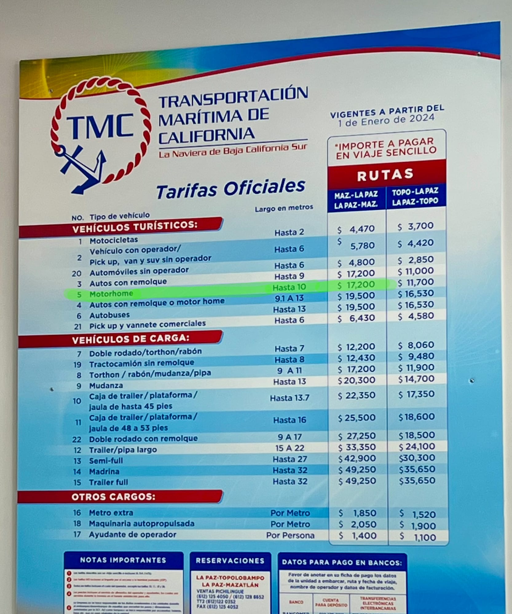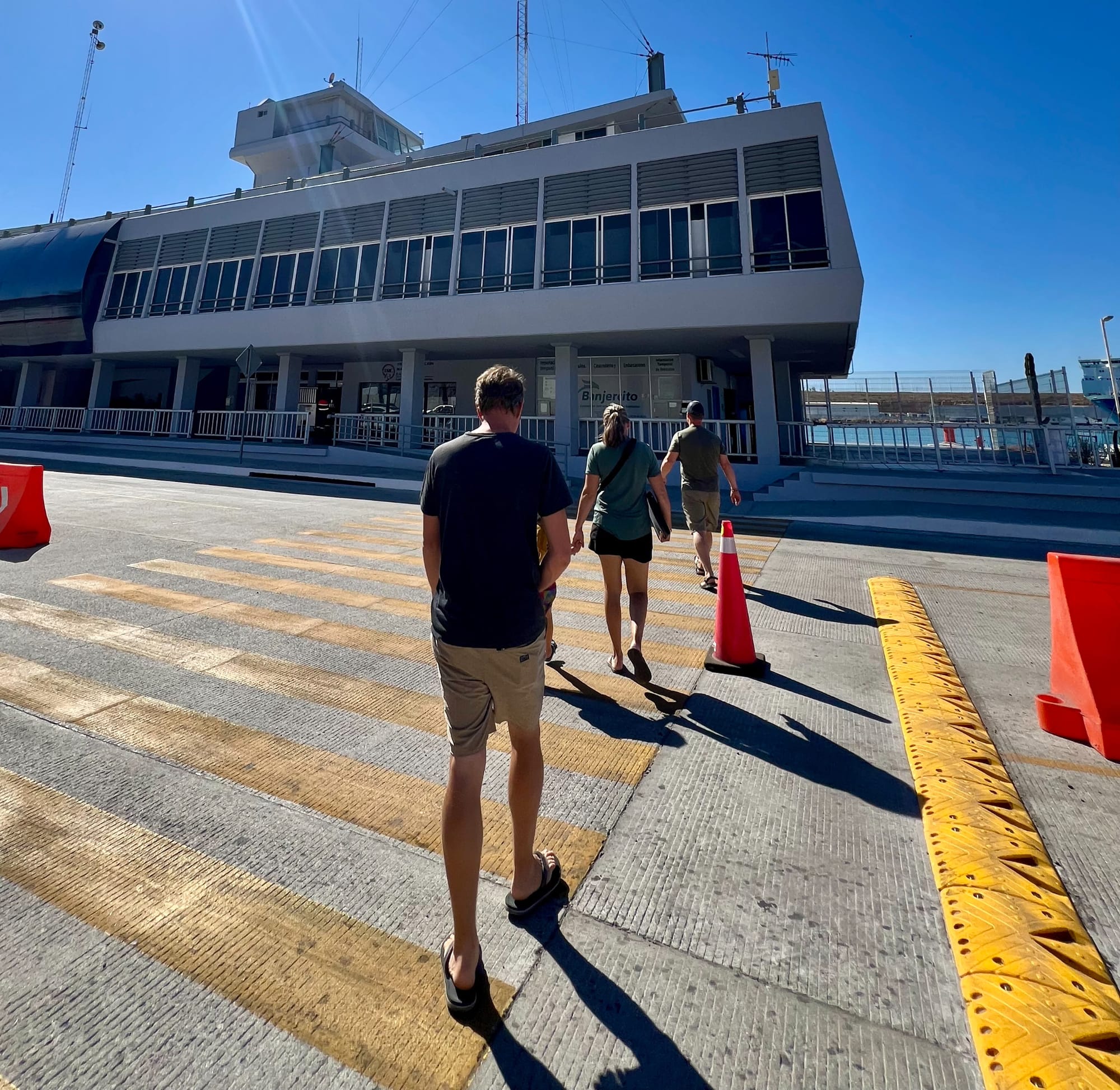 Josh and Darci are the first to arrive at the port and when the guard, in Spanish, asks their reason for being at the port today, Josh in his limited Spanish manages to convey his intentions of making a reservation by simply saying “Mañana…mañana, mañana, mañana…” Which translates to “Tomorrow…tomorrow, tomorrow, tomorrow…” This surprisingly works and the guard directs them to a parking area where we arrive soon after followed by Mark and Michele. We all walk across the busy parking lot filled with families looking to take the passenger ferry along side semi trucks lining up for the commercial ferry. Of the two options we all prefer the commercial ferry as they allow you to stay with your camper and so we make our way to the TMC Ferries office. After about fifteen minutes and a combined effort from all involved we at least think that we each have a reservation to board the ferry and cross to mainland Mexico on the first of January. We all brim with excitement at the thought of starting the new year aboard a boat bound for new experiences and new places!