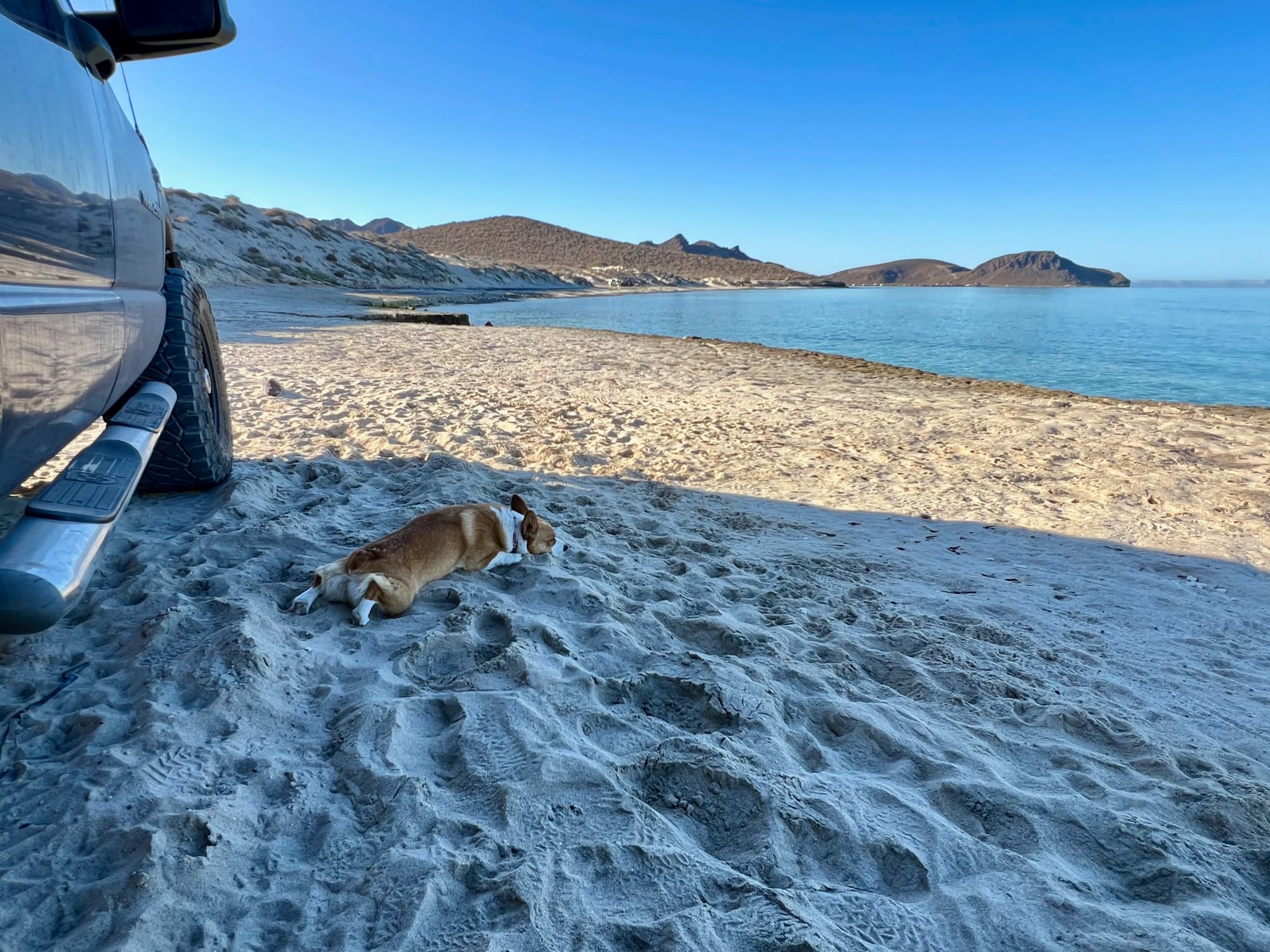 With eleven days left to enjoy the Baja peninsula before departing for mainland we decide to sit still where we are for the next two days and enjoy the beautiful turquoise water which we are camped on. The morning is spent writing and editing photos before I pry myself away from the laptop, grabbing my snorkel and spear to explore the rocks and coral reefs nearby. There is certainly an abundance of small, colorful reef fish but nothing of note worth eating so I quickly give up hunting and instead enjoy the sea life that surrounds me for a while before returning to shore.