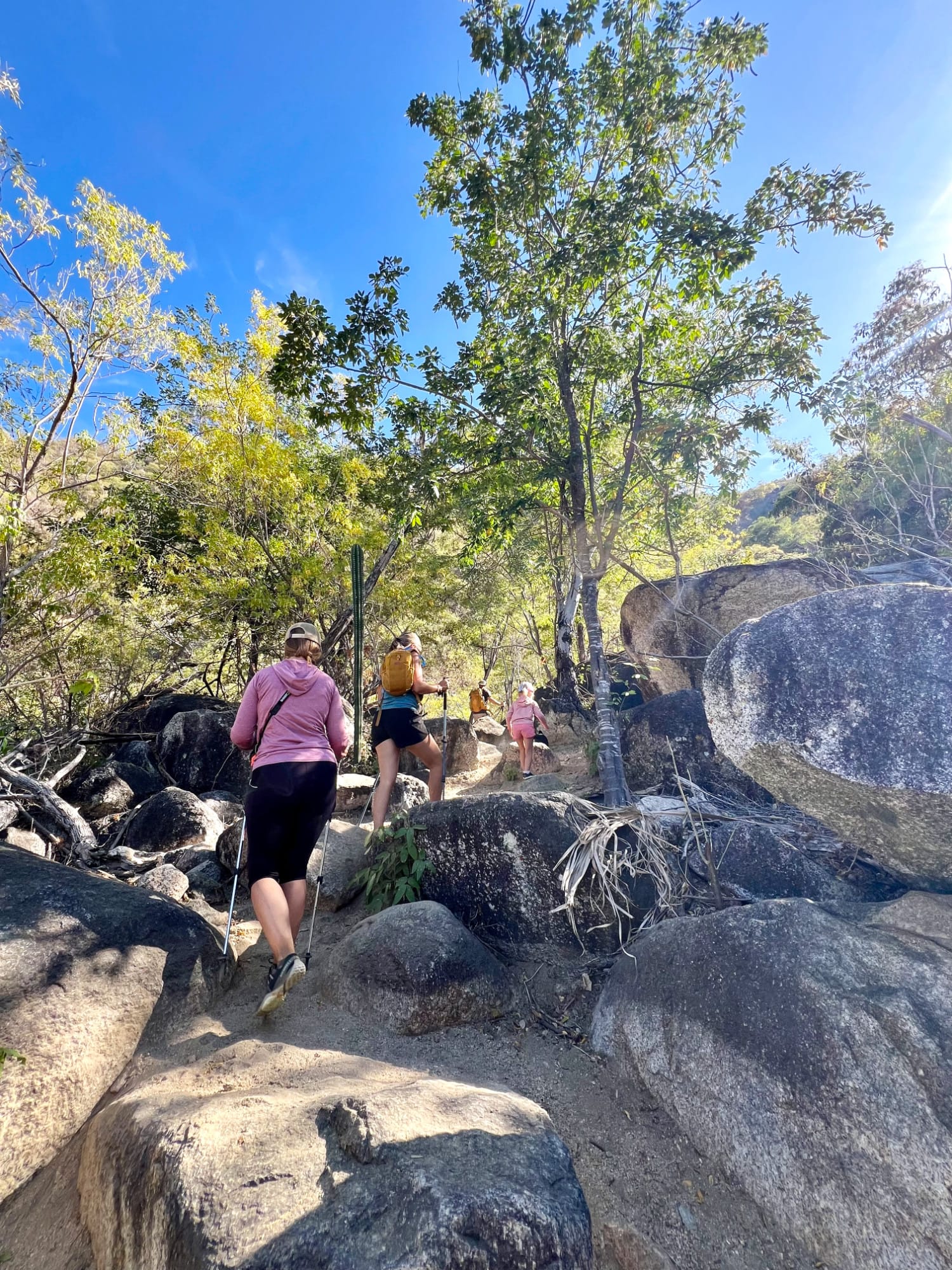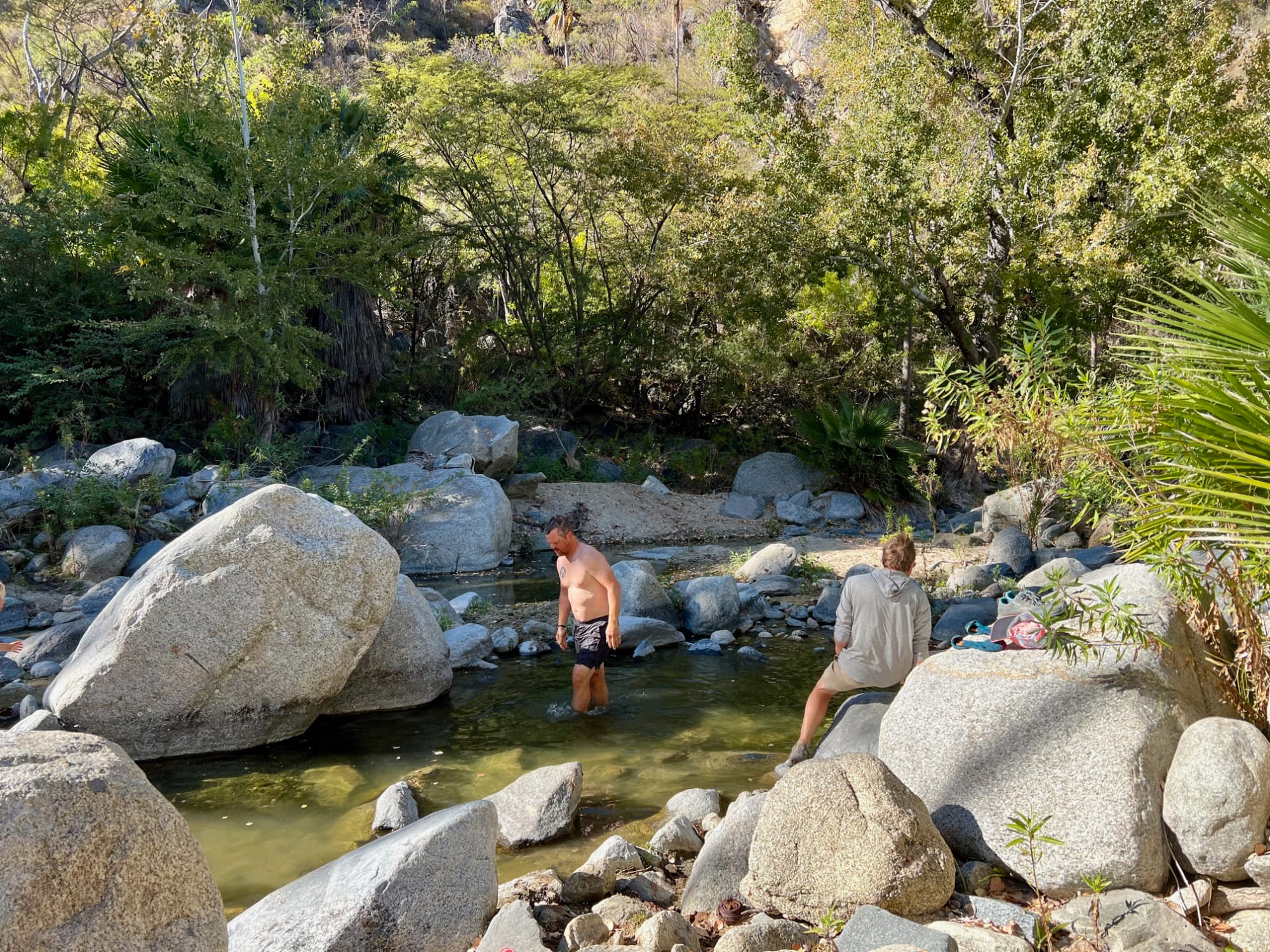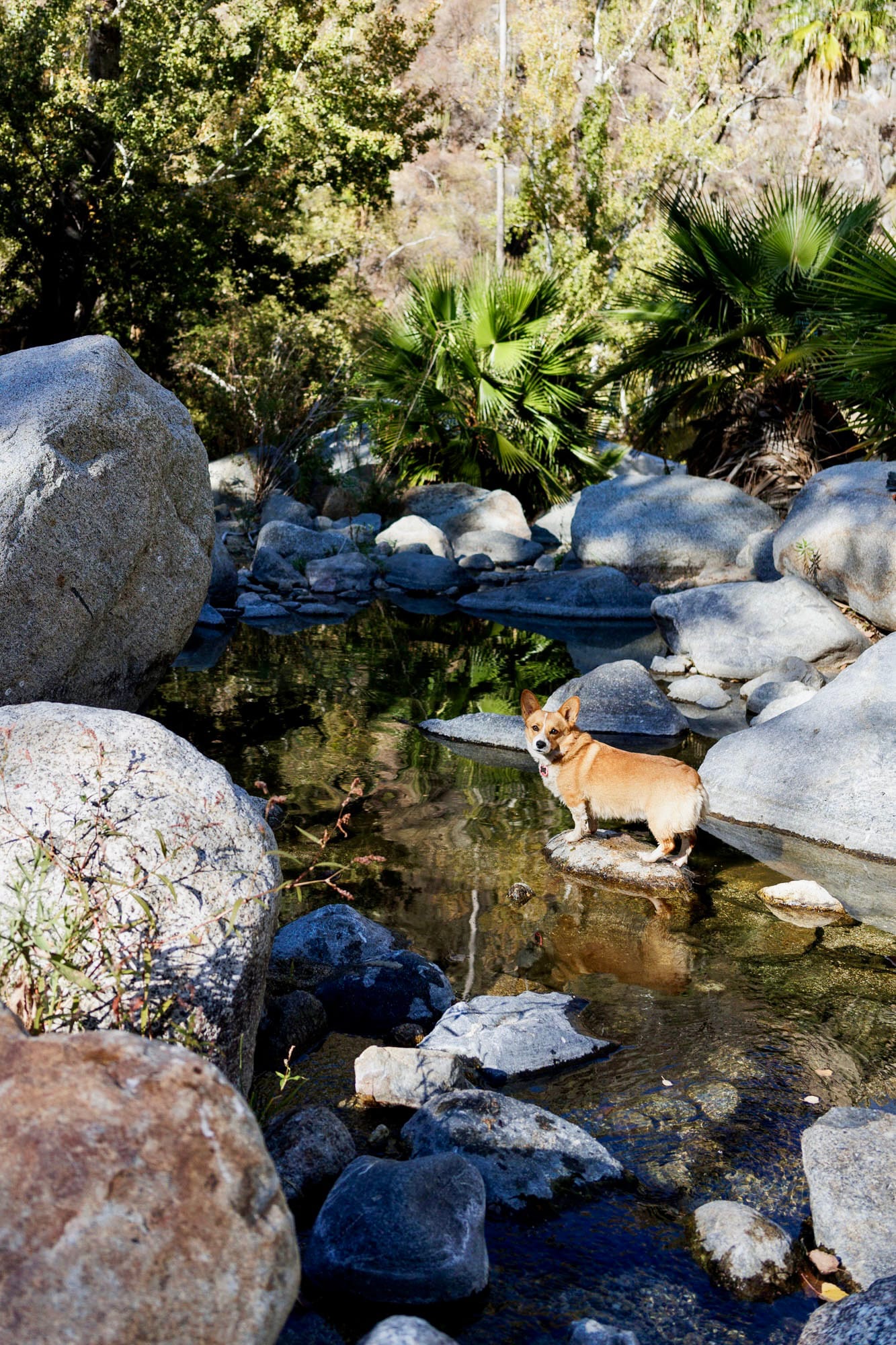As the morning draws on a local church group of around 80-100 people trickles in to celebrate the holiday at the ranch and our small group looks for an activity to get away from the crowds. Clarence mentions that though they are currently experiencing a draught on the peninsula and the adjacent river is nearly dry, just a “20 minute walk up the hill” of a nearby trail reveals some natural pools that are still deep enough for a swim. We all agree a short hike would be nice and each prepare our packs. We head away from the ranch and almost immediately start gaining elevation, walking alongside and crossing the dry riverbed for much of the way. After a couple of stops for breaks and pictures, around 45 minutes into our “20 minute walk…” it occurs to me, Clarence is an accomplished ultra runner and his “20 minute walk” is much different than any of ours, especially our two corgis who are along for the trek. Perhaps time is not the best measure of distance…who would have thought!