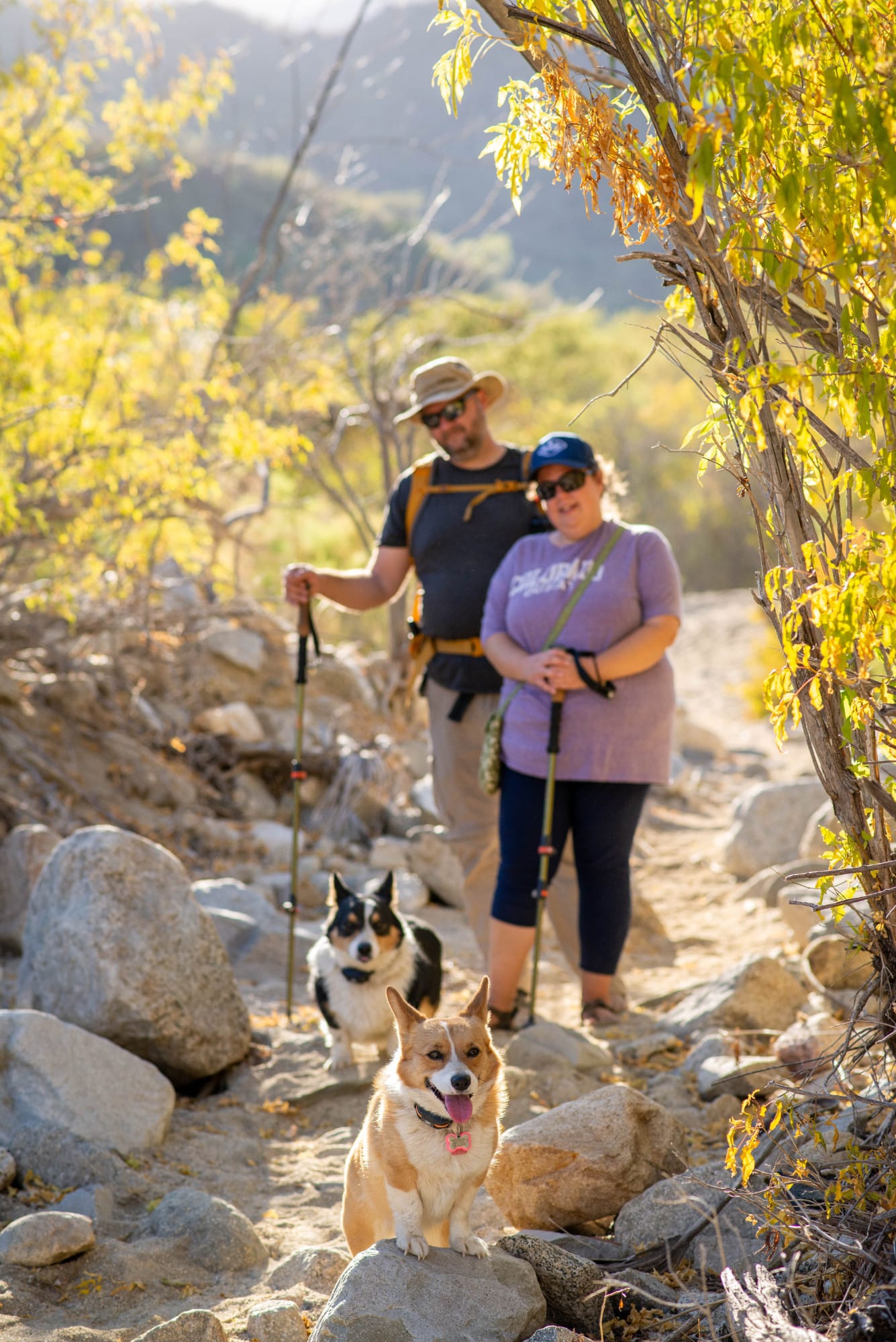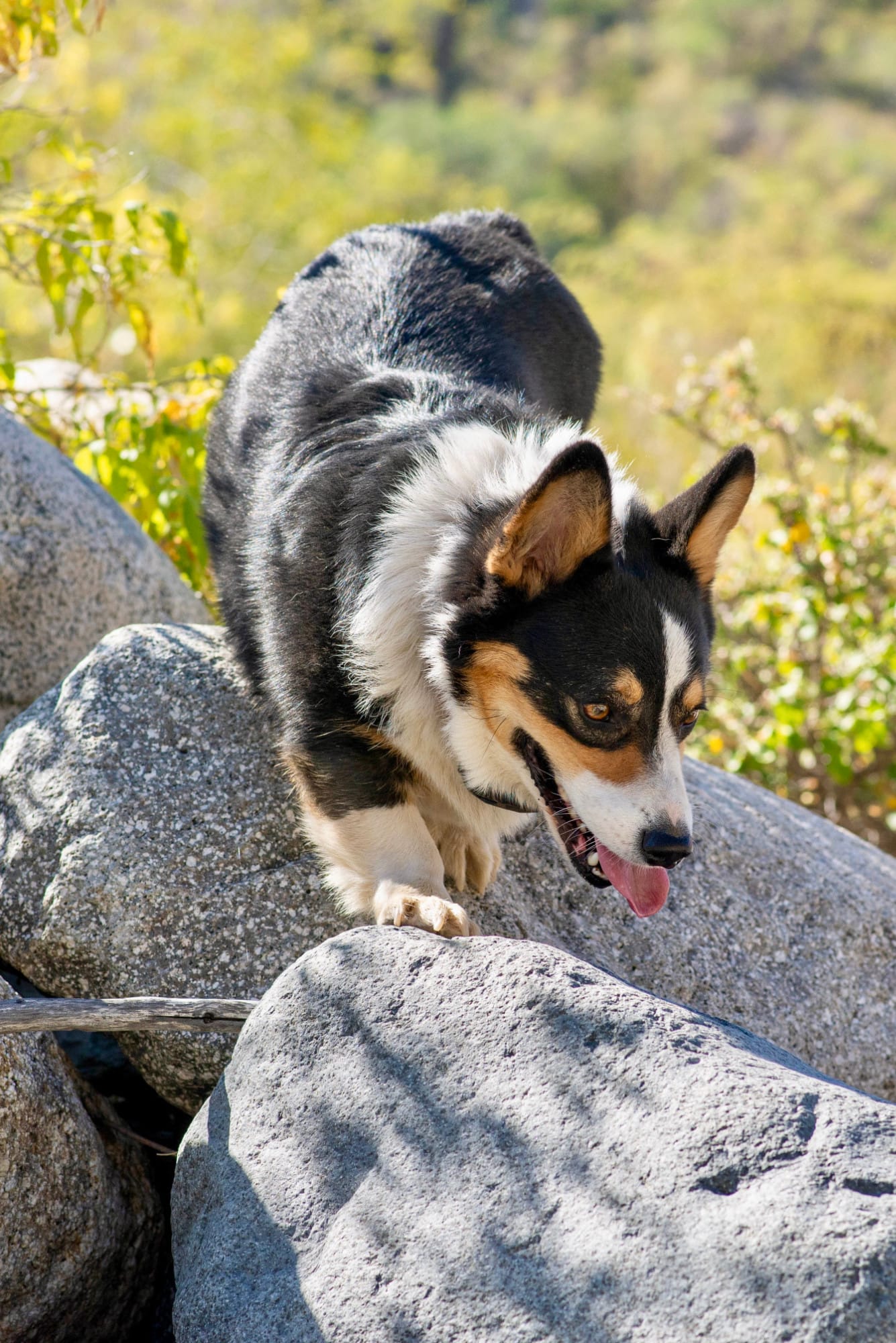 With the sun looking to dip behind the mountains sooner rather than later we decide not to hang around too long and begin our descent back towards the ranch. Not long after we start our return journey it becomes apparent that the hike is taking its toll on the sweet baby Duke. We have a backpack made for carrying the pups for just this occasion! Unfortunately around a mile into the hike we realized it had been left behind in the camper. Thankfully the return trip is nearly all down hill and it takes less than half the time to reach camp as it did going up, even though we still take plenty of breaks to let the dogs rest on our way back.