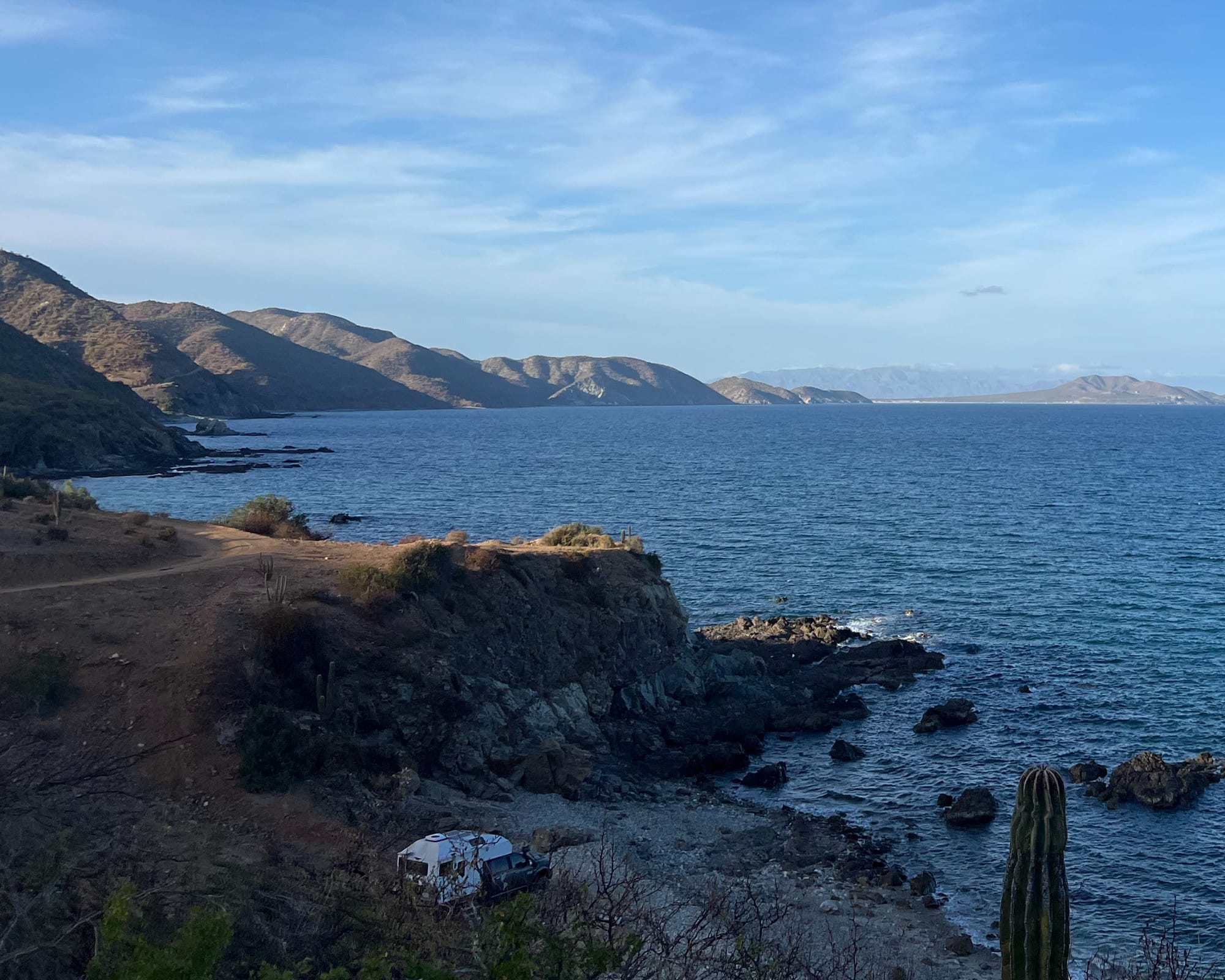 We stop once again in Santiago at Restaurante Pericu for a big plate of chilaquiles before continuing on to Los Barriles where we resupply groceries, water, and fuel. This is our first time in Los Barriles and it is certainly a gringo hotspot, somewhere we have no interest in staying. After our chores and running around in town are completed we continue north, initially away from and then along the coastline. As we make our way out of town Heather and I talk about how grateful we are to be traveling with such an amazing and capable group of friends. There is a certain comfort in knowing that no matter what happens, the people you are traveling with and living alongside of aren’t going to leave you stranded but will instead be there to help you through.