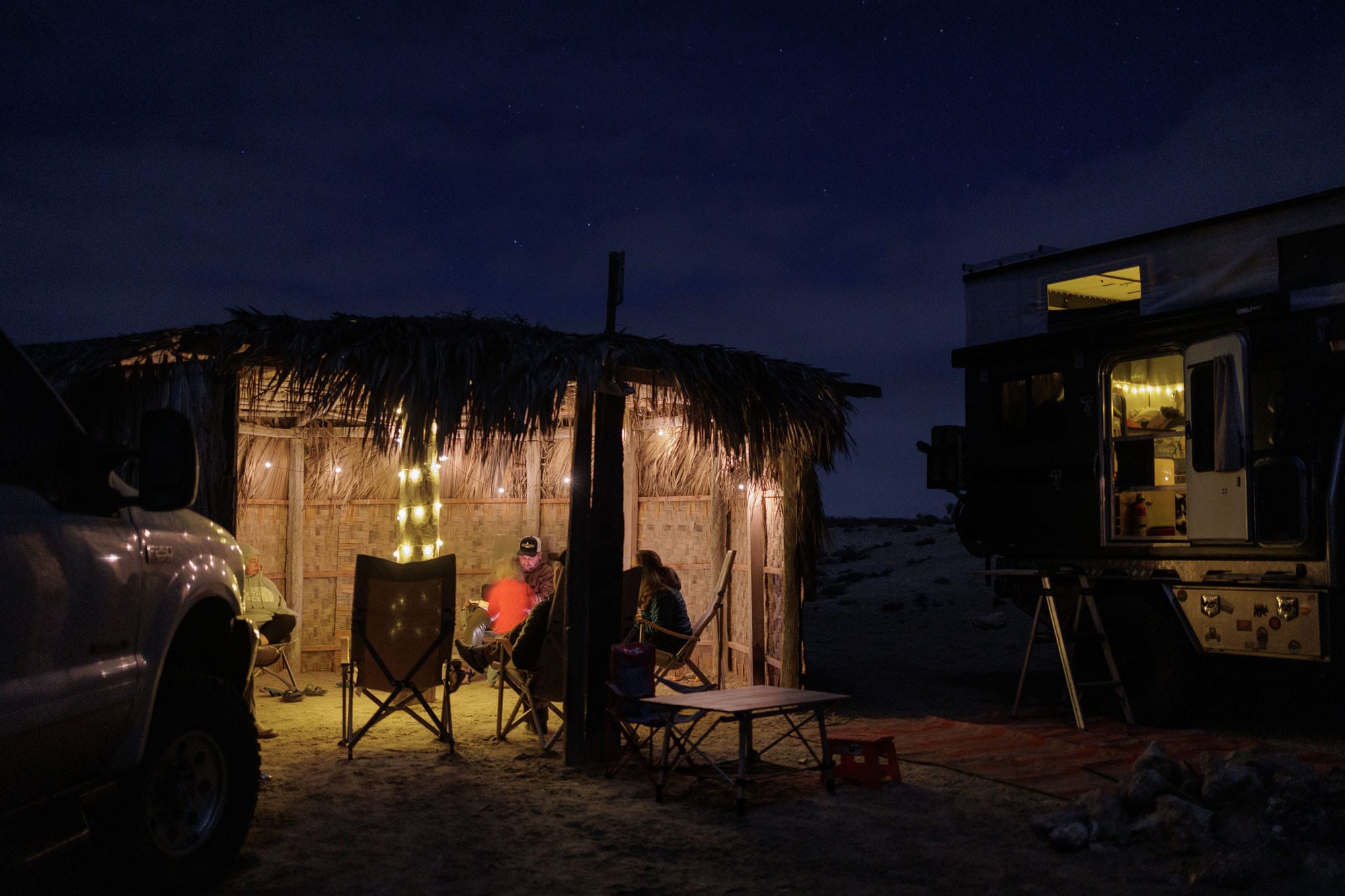 With our appetites satiated we head out of town for the short drive to Ojo de Libre in hopes of hiding from a massive wind event that seems to be affecting much of the peninsula with the exception of this small pocket. In just a couple of months this place will become quite busy as the Grey Whales move into the adjacent lagoon, but for tonight it appears to be just our three rigs! We spent the evening settling into camp and getting lost in conversation.