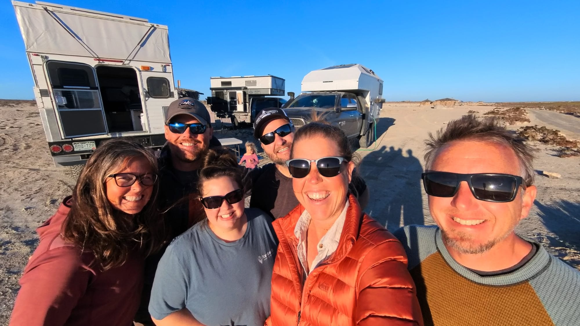 While in Guerro Negro we have a few things to take care of. We need groceries, water, fuel, fish tacos and most importantly to connect with our friends who we will be spending most if not all of the winter with! As we walk out of the grocery store we spot Mark & Michele pulling up in their Four-Wheel Camper followed closely by Josh, Darci, and Hannah in their ATI Overland flatbed truck camper. This reunion has been looked forward to since we separated in January nearly a year ago and it is finally here! We said our hellos and made plans to meet up at Tacos el Muelle once we finished the rest of our chores. Tacos el Muelle has arguably some of the BEST fish tacos on the Baja peninsula and not one of us is disappointed with our meal, even our friends who had clearly already eaten but still managed to find room for a couple of tacos each.