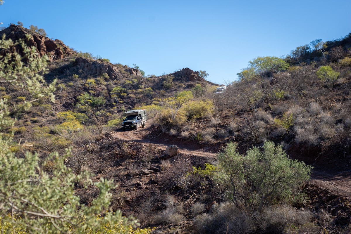 In the morning Josh and Darci are the first to get packed up and they depart camp about an hour ahead of us. We don’t have a great amount of distance to cover today however the steep narrow shelf road on which we are camped takes some time to