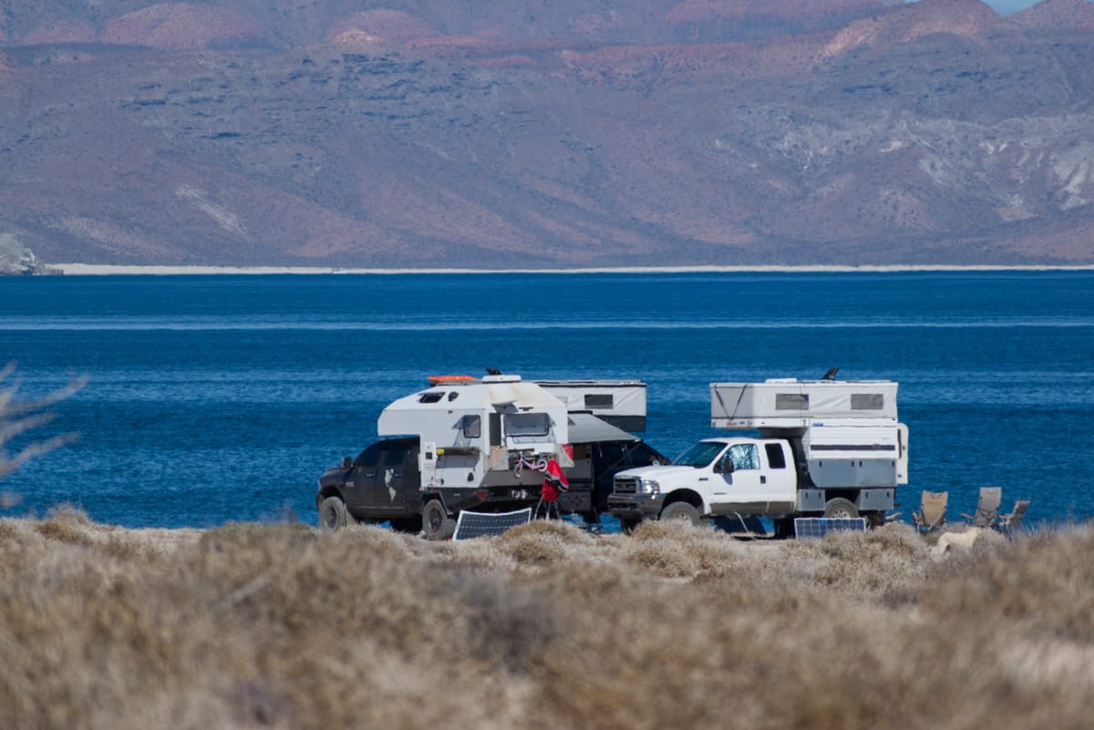 After our previous night spent in Loreto the tranquility of our new sea side camp is welcomed by all and everyone wakes ready for the days activities, whatever they may be. We spend the first part of the morning drinking our coffee while watching the water surface boil from predators