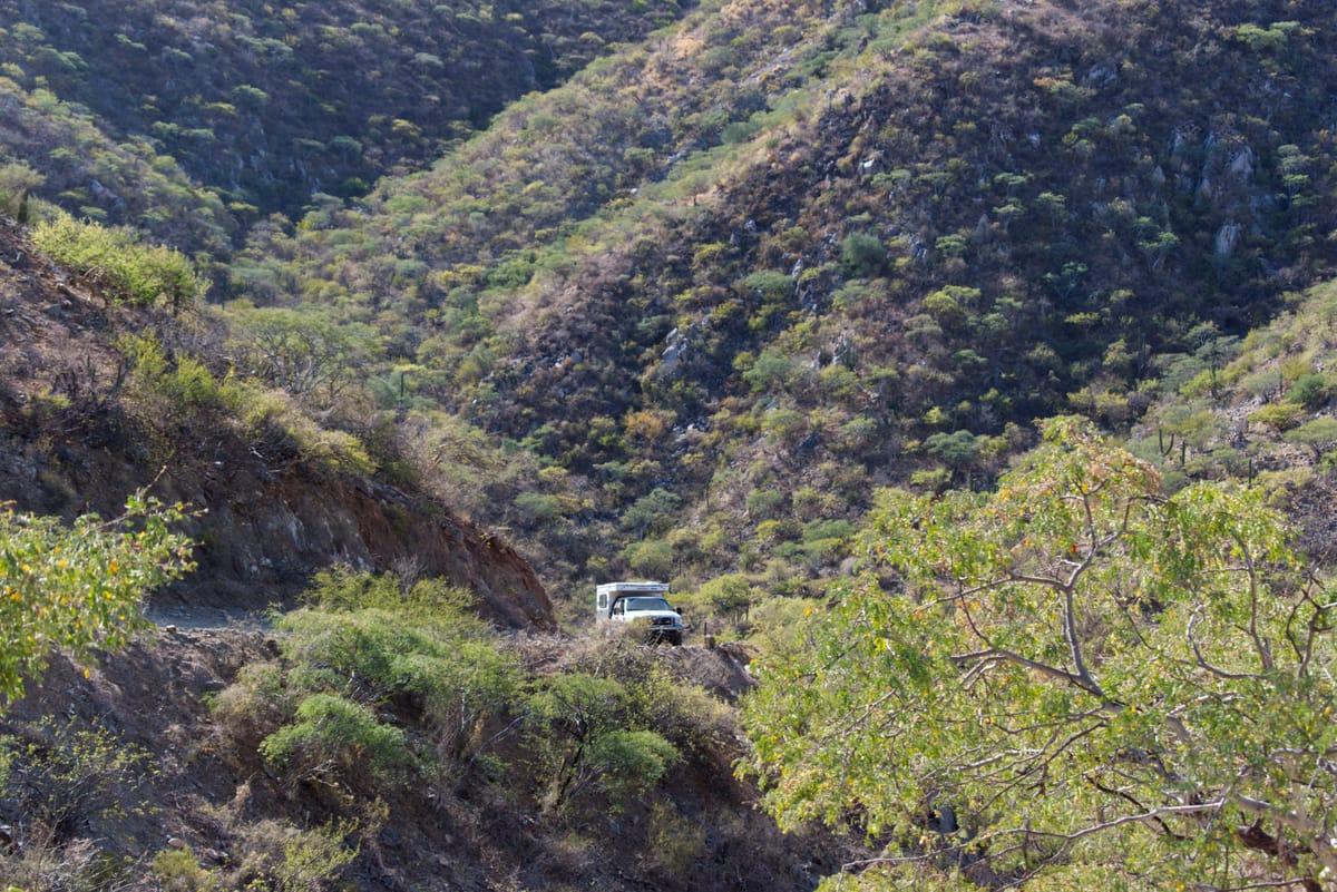 We’re on the road again early this morning and we initially backtrack a bit to Parras for supplies. First a Soriana to stock up on groceries and then a trip down some narrow side streets to fill our water cans. We wait in a Pemex parking lot while Josh