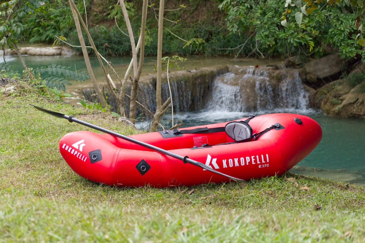 The plan for today is to get out on the water! After breakfast I get out and inflate one of our packrafts so that Heather can do some paddling around on the turquoise water we are camped on. I put the raft in the water and take a quick test
